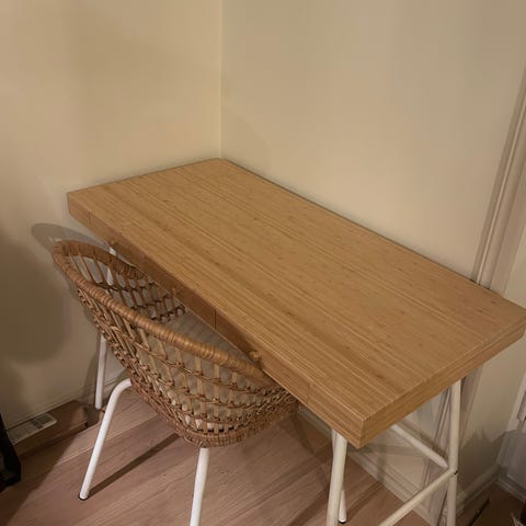 Ett nätt skrivbord gjort i slitstark bambu. 3 lådor i A4-storlek med plats för papper och andra småsaker.
