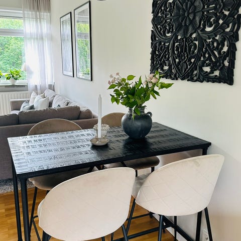 Säljer en mycket fin matgrupp bestående av barbord och barstolar.
