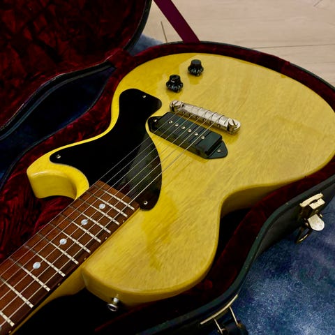 P-90 passar perfekt på den har guran. Ljudmässigt ligger den i linje med en Les Paul Junior.