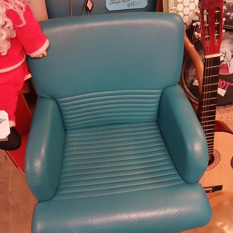 4 svarta skinnfåtöljer med kromad fot som går att snurra. Breda armstöd och nack kudde som går att reglera. 1 liten kudde ingår.