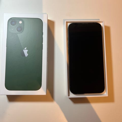 Apple iPhone 13 smartphone med 128 GB lagringskapacitet och vit färg. Batterikapacitet 88%