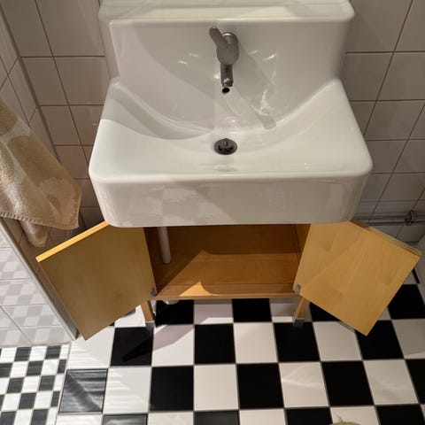IKEA Underskåp med måtten 60x60 cm i vitt utförande. Skåpet har två dörrar och är tillverkat i material som är anpassade för badrum eller kök. Passar för förvaring under vask eller bänk.