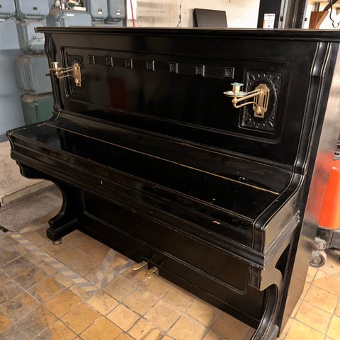 Laferty Upright Piano i trä med brun finish. Har två pedaler och en klassisk design. Passar för olika musikaliska miljöer och användningsområden.