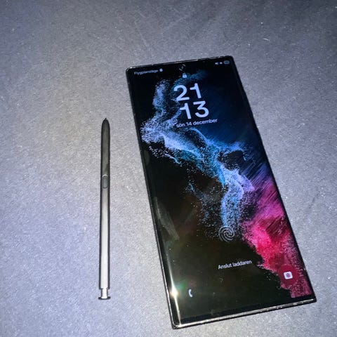 Samsung Galaxy S22 Ultra med 128 GB lagringsutrymme. Telefonen är fullt fungerande och batteriet är i normalt skick.