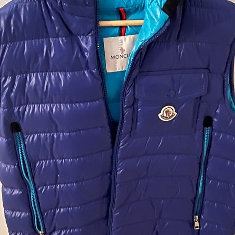 Moncler Västar i storlek L för dam. Västen är tillverkad i polyester och har en lila färg. Ny pris 8500 mitt pris 67