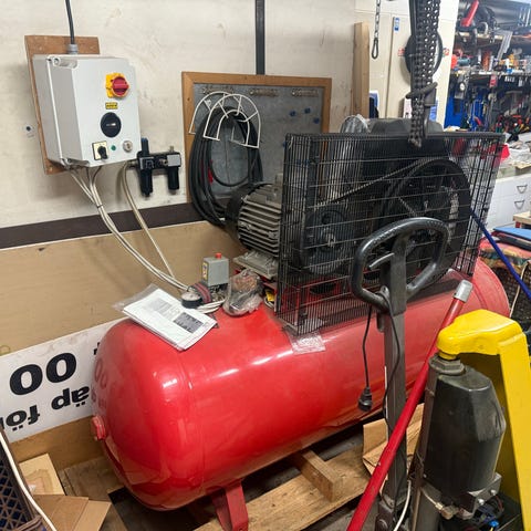Bläster klocka med slang för friskt luft och sand, ståt ute några år men fungerade när jag ställde den där, behöver nog lite omsorg och översyn, säljes i befintligt skick, måste hämtas.