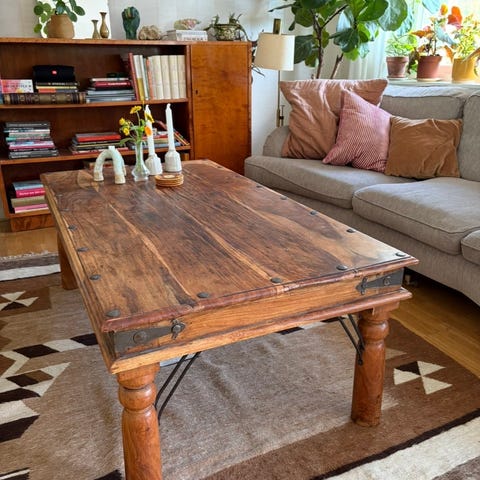 Fint soffbord i trä, dock osäker på vilket träslag.
