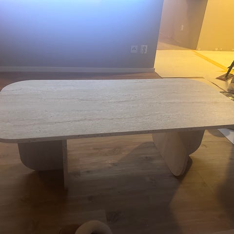 Bordet är stabilt, lätt att hålla rent och passar bra i ett modernt vardagsrum.