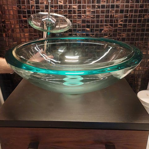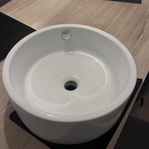 • Rundat ovanpåliggande handfat i fint skick (ca 50×35×15 cm, inga anmärkningar)