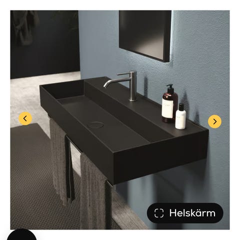 • Hög svart blandare, anpassad för denna typ av tvättställ – lite kosmetiskt slitage upptill, men inget som stör helhetsintrycket (se bilder)