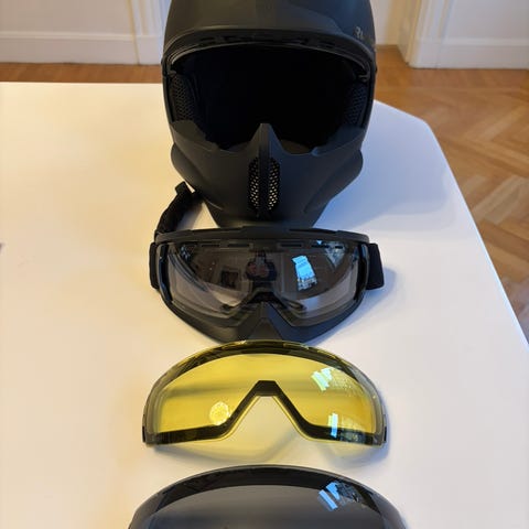 Ruroc RG1-DX hjälm i storlek XL/XXL. Hjälmen har integrerade goggles och avtagbart ansiktsskydd. Perfekt för vintersport eller andra aktiviteter.