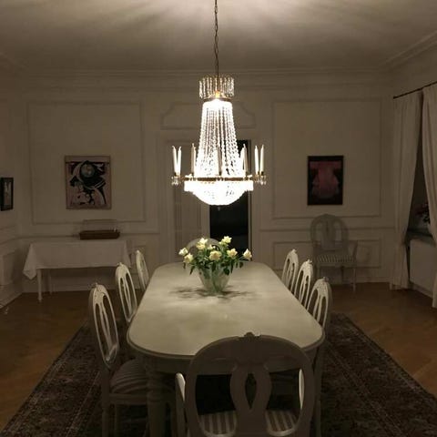 Stor kristallkrona i hög kvalitet som passar bra på olika takhöjd, vanlig takhöjd eller högre. Med många glödlampor och ljushållare för levande ljus.