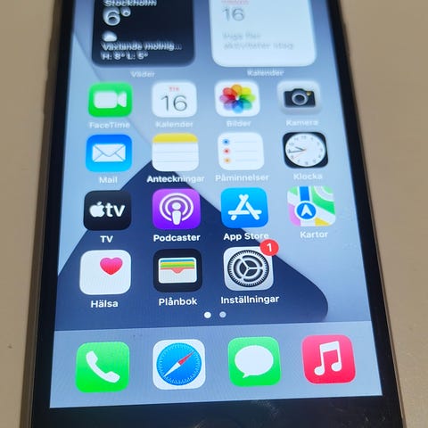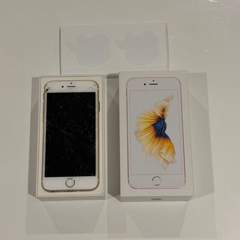 Apple iPhone 6s smartphone med 64 GB lagringskapacitet. Enheten har en skärm med fingeravtrycksläsare och en bakre kamera.