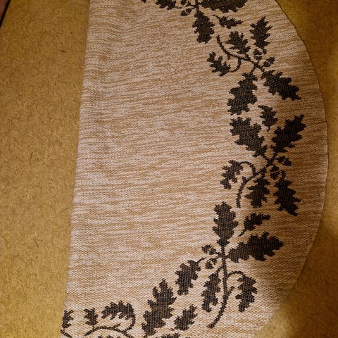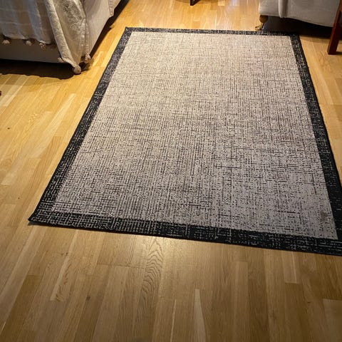 Tappeto Voes matta med måtten 140x200 cm, tillverkad i blå bomull. Mattan har ett dekorativt mönster och är avsedd för golvanvändning men kan mycket väl också användas som överkast (vilket vi gjort, en kortare tid). Använd mycket få gånger.