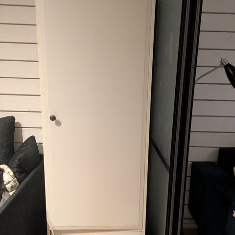 Garderob för 3 saker, 2 hyllor, varav 1 på galge, vit, i gott skick.