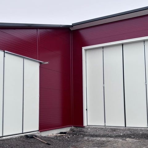 Vi skräddarsyr portar och tillverkar på cm. Från små garage till stora Hangarportar upp till 15 meter breda.
