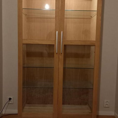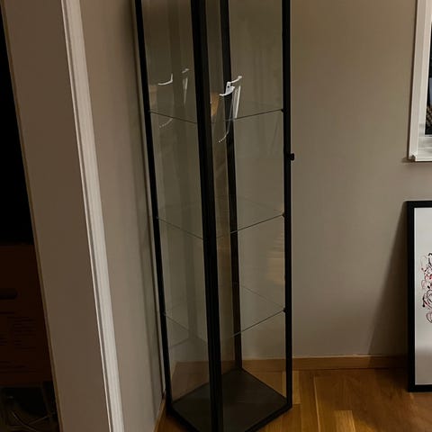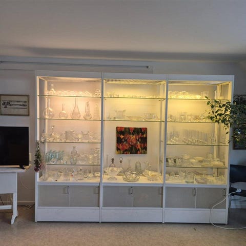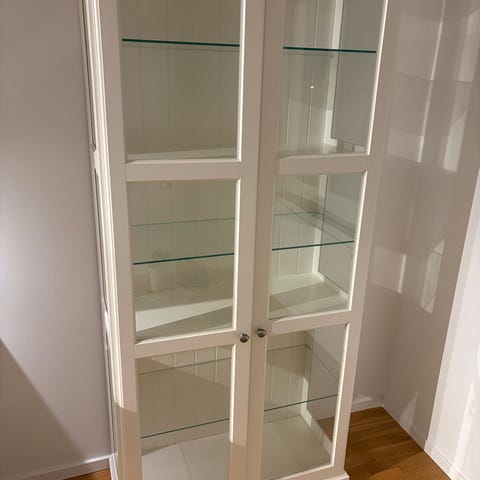 IKEA Sydve vitrinskåp med belysning på varje hyllplan.