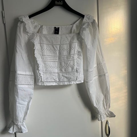 Topp storlek S från Lindex i lite sammetsliknande tyg. Rund hals fram och v-ringad bak. 95% polyester och 5% elastan. Längd ca 58 cm och axelbredd ca 40 cm. Fint skick, ser inget att anmärka på.