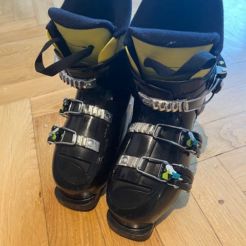 Barnpjäxor för alpint i modellen RSJ65. Storlek 20,5 vilket är ett innermått på ca 20 cm. Superskönt pjäxa som mina barn älskat. Väl använd men har fortfarande fler säsonger i dig. Förstärkt med svart tejp på plösen. Inget som syns eller känns när den sitter på.