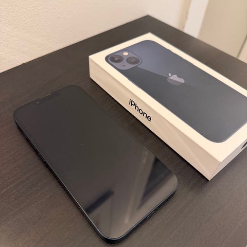 Apple iPhone 13 mobiltelefon med 128 GB lagringskapacitet i svart färg.