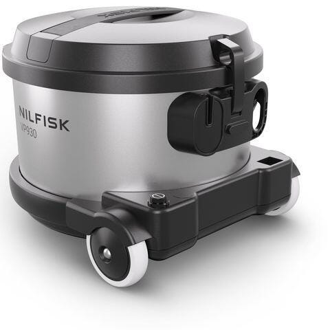 med lång orange sladd och hjul för enkel förflyttning. Utrustad med teleskoprör och olika munstycken för rengöring av golv och andra ytor.
