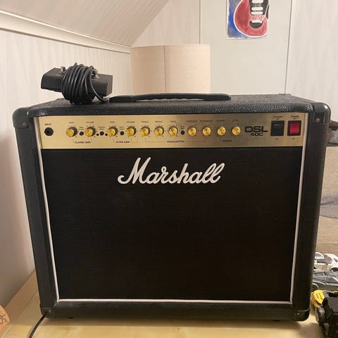 Marshall Silver Jubilee Model 2555 Gitarrtillbehör med studiofunktion. Förstärkare med reglage för bas, diskant och andra inställningar. Färg: grå och svart. Används för gitarrförstärkning.