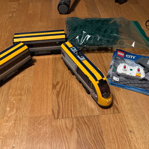 LEGO City tågsats 60198 med 2 extra förpackningar med räls. Se foto 2 och 3. Tåget är i gott skick med alla instruktioner och alla originalförpackningar. Det är redan monterat.