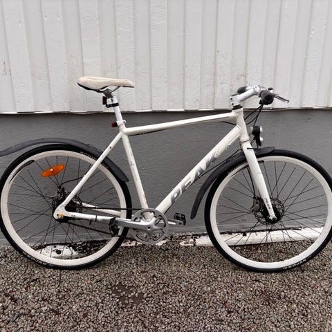 Lätt och smidig modell med lättviktsram av aluminium, 21 st växlar, handbromsar fram/bak. Komplett utrustad med ringklocka, pakethållare, skärmar, stöd och ny cykelkorg. Allt fungerar utmärkt.