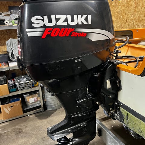 En komplett Suzuki 2-takt med trycktank och reglage. 1998 års modell. Går bra men behöver lite kärlek om man vill.
