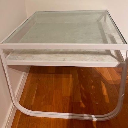 Rätt repig efter transportskadan men kan fixas enkelt med lite färg. Eller sätt egen prägel på det och måla i egen kulör. Man kan även ha träskiva eller glas såklart.