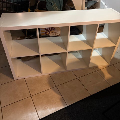 Bokhyllan är 37x34x145 cm. Varje fack är 32x 33,5 cm.