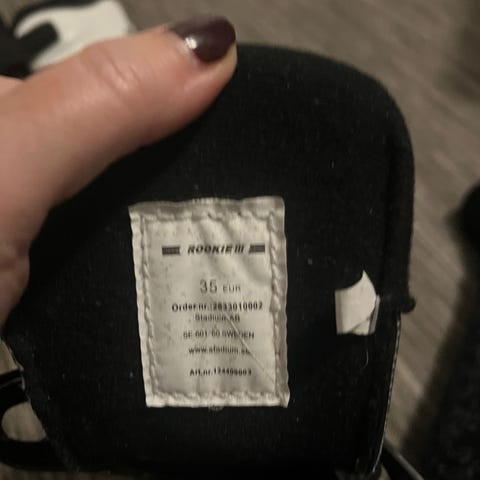 Reebok Ishockeyskridskor för barn i storlek 35. Skates är avsedda för ishockey och har svart och vit färg med orange detaljer.