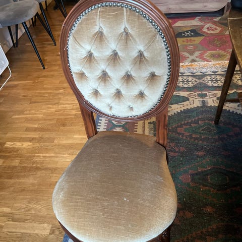 Säljer nu min fina stol. Det är en stol i barockstil som är omklädd i ett härligt Frida Kahlo mönster. En stol som är en utsmyckning till rummet.