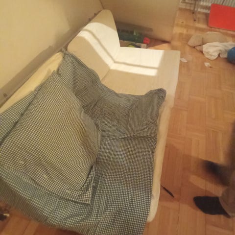 1950/60-tal 3-sits soffa. Omklädd. 212 cm lång. Även enkel bäddsoffa (madrass i ryggen).