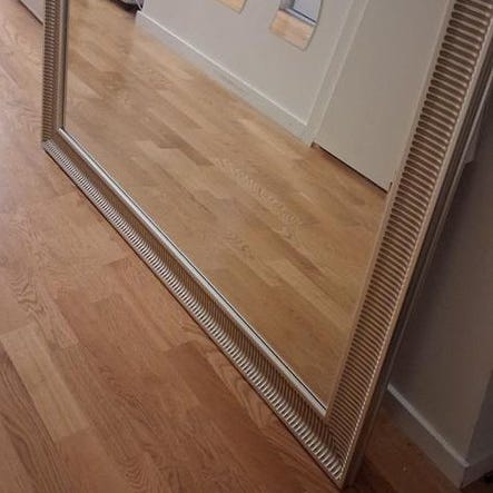 Stor vitmålad spegel.