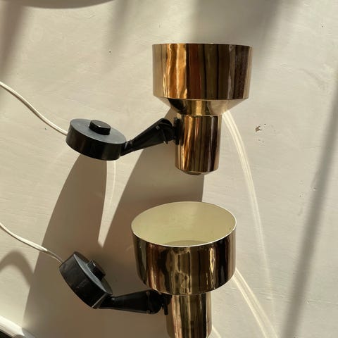 Material: mässing (metall) + textilskärmar med frans.