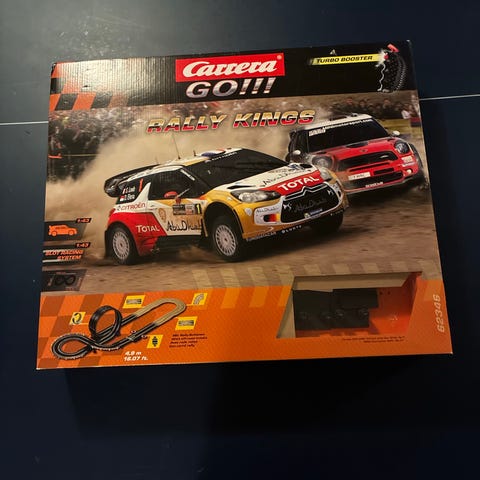 Vtech bilbana med kontroll och bil. Bilen styrs med fjärrkontroll och vid olika passager på banan så låter bilen med ett tjugotal olika ljud.