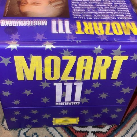 Wolfgang Amadeus Mozarts samlade skapelser på 170 CD skivor i mycket gott skick. De flesta aldrig spelade, i fin samlingslåda. Har förvarats skyddat i skåp.