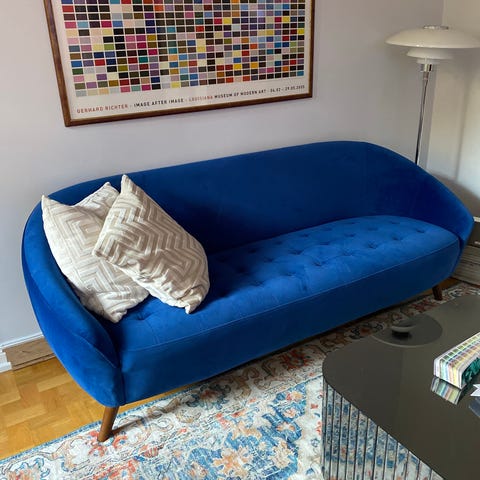 Mio soffa i grön färg. Soffan har en mjuk och vadderad design med två sittdynor och två ryggdynor. Passar för vardagsrum och erbjuder bekvämt sittande.