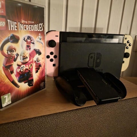 Nintendo Switch spelkonsol med Joy-Con-kontroller i röd och blå färg. Konsolen kan användas både som bärbar enhet och ansluten till TV. Inkluderar dockningsstation för anslutning till TV samt Joy-Con-handkontroller för spel i olika lägen. Knappt använd utan mest stått och samlat damm därför den säljs. Ring fit adventure ingår.