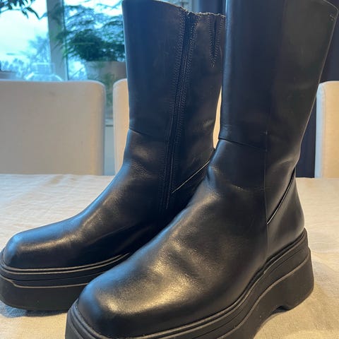 Svarta Vagabondstövlar storlek 39 i skinn med krokodilmönstrad yta. Stövlarna har en spetsig tå och en medelhög klack.