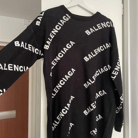 Balenciaga T-shirt i svart färg med tryck fram och bak, storlek M, tillverkad i bomull. Passar herr stor M-Large.