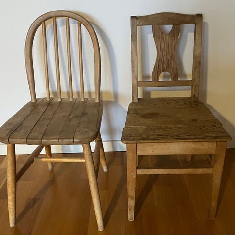 Säljer ett större parti barnstolar i trä.