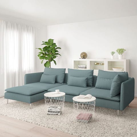 Komplett klädsel till två tresits och en hörnmodul från ikea. I fint skick! Finns två ställen där det finns hål i tyget under själva kudden men annars i fint skick och inget anmärkningsvärt vad jag kan syna.
