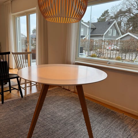 Handgjort matbord från Haslev. I okej skick med spår av användning. Mindre ”skador” syns på bild.