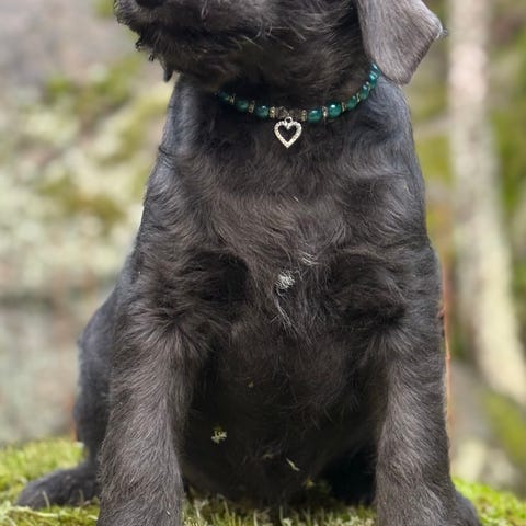 Valpen är mycket tillgiven, lättlärd, busig och vi tränar valpen att kissa utomhus