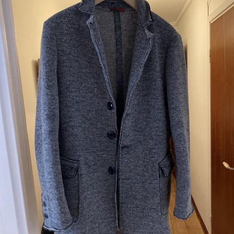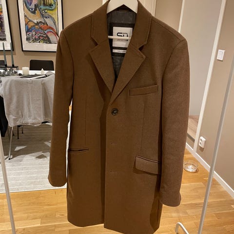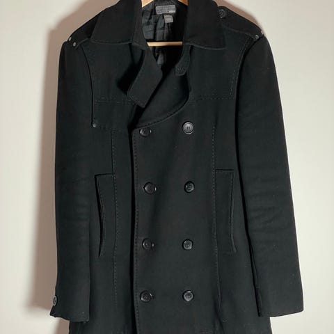 Säljer en svart ullrock herr i storlek 48. Dubbelknäppt med ”skärp” i ryggen.