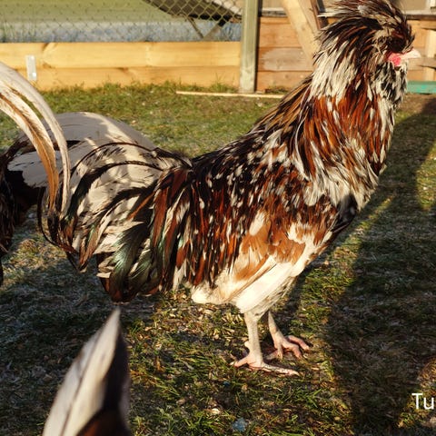 Har tyvärr fått ett överskott av tuppar. Otroligt vackra och ger vackra blandras avkommor med höns i samma storlek. De är allt från 2 år till kläckta i år. De blir allt pampigare när de är vuxna, de yngre ser tunnare ut ännu. Rasen är snäll, lugn och mkt ruvvilliga, värper bra halvstora ljusbruna/beiga ägg.