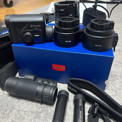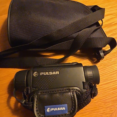 Säljes med Pulsars egna fäste för sikten med 56mm lins (PSP-56). I gott skick. 640 sensor, 50mm lins.