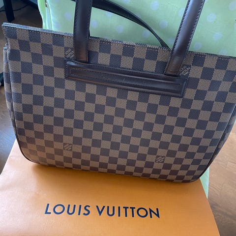 Väska Louis Vuitton Westminster GM, Damier Ebéne canvas, guldfärgade beslag, 30x27x16 cm, datumkod: DR0122, med dustbag och påse, fläckar på insida, repor på läderdetaljer och slitage på undersida kanter